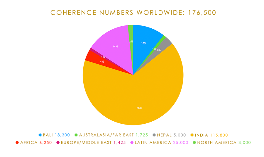 During the OYD afternoon knowledge session Dr. Peter Ledbetter (Ambassador for the Maharishi Vedic Pandits in the UK) delighted us with the World Coherence numbers: A grand total of 176,500 Meditators and Sidhas meditating and doing the TM-Sidhi Programme in their respective countries, either in groups or through the online TM programme.